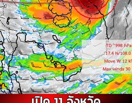 เปิด 11 จังหวัด ฝนถล่ม เตือนพายุดีเปรสชัน