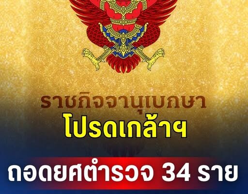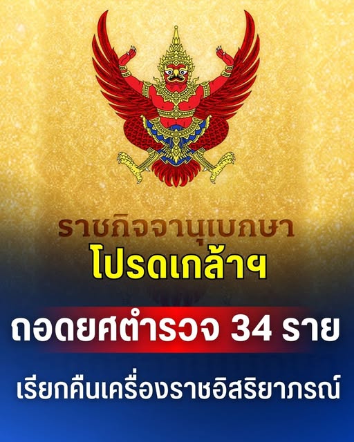 โปรดเกล้าฯ ถอดยศตำรวจ 34 ราย เรียกคืนเครื่องราชอิสริยาภรณ์
