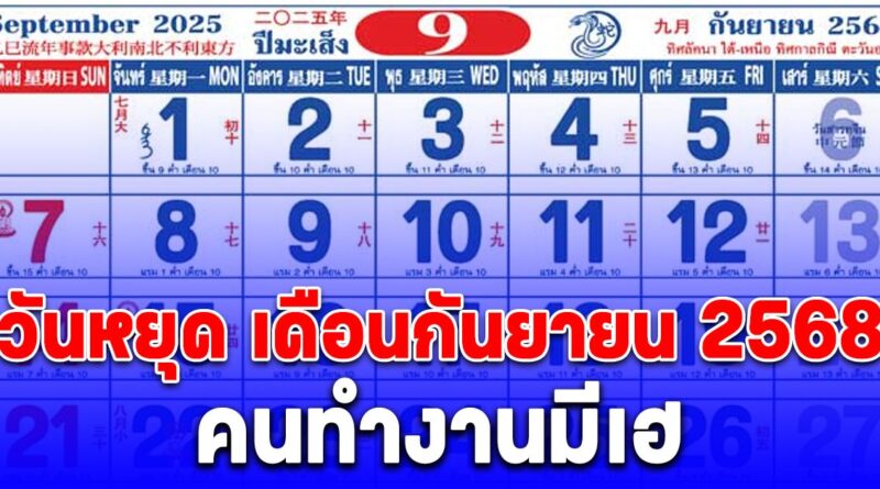 วันหยุดเดือนกันยายน 2568 ไม่มีวันหยุดพิเศษ
