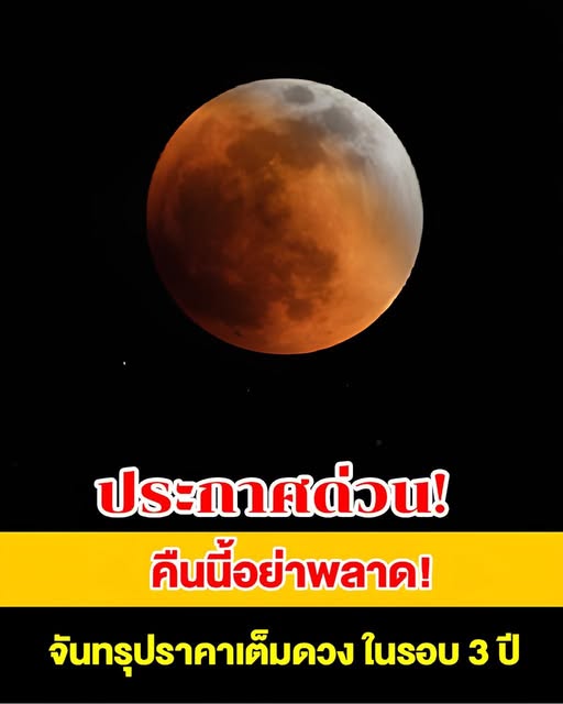อย่าพลาด!!! คืนนี้มี จันทรุปราคาเต็มดวง ในรอบ 3 ปี ถึงเช้ามืดวันจันทร์ที่ 8 ก.ย.