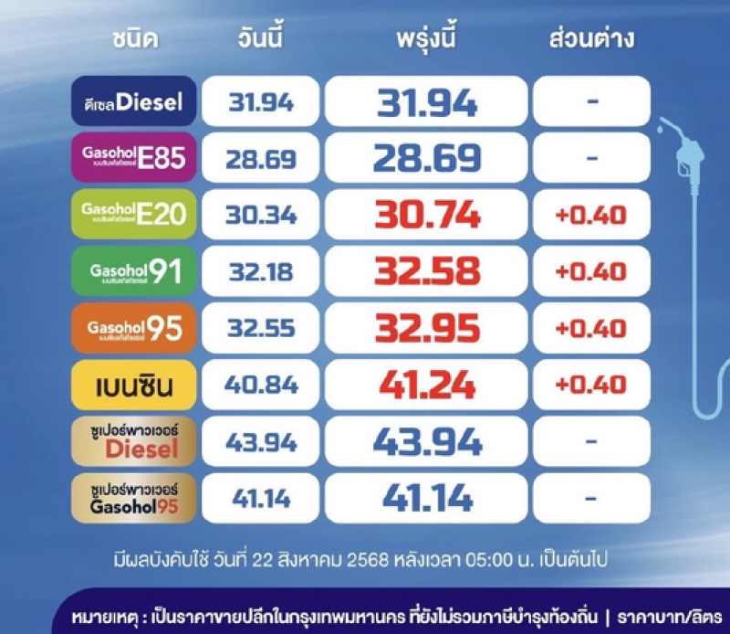 ราคาน้ำมันพรุ่งนี้ (22 ก.ย. 68)