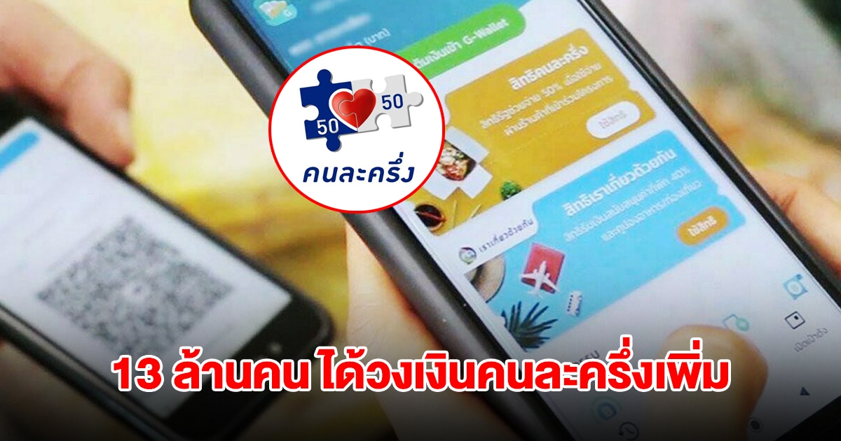 คนละครึ่งเฟสแรก 13 ล้านคน ได้เงินเพิ่มเป็น 2000
