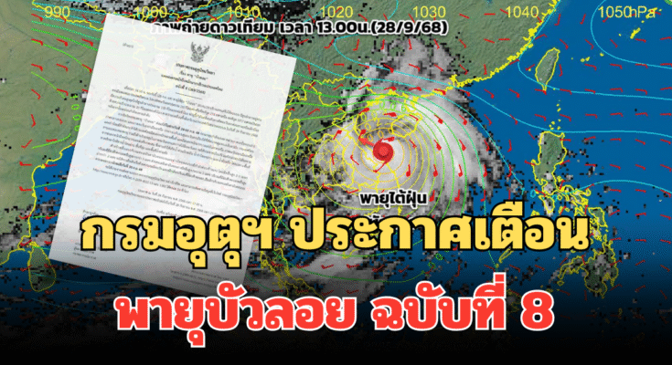 วันที่ 28 ก.ย.2568 ประกาศจากกรมอุตุนิยมวิทยา เรื่อง พายุบัวลอย และฝนตกหนักถึงหนักมากบริเวณประเทศไทย ฉบับที่ 8 (269/2568)