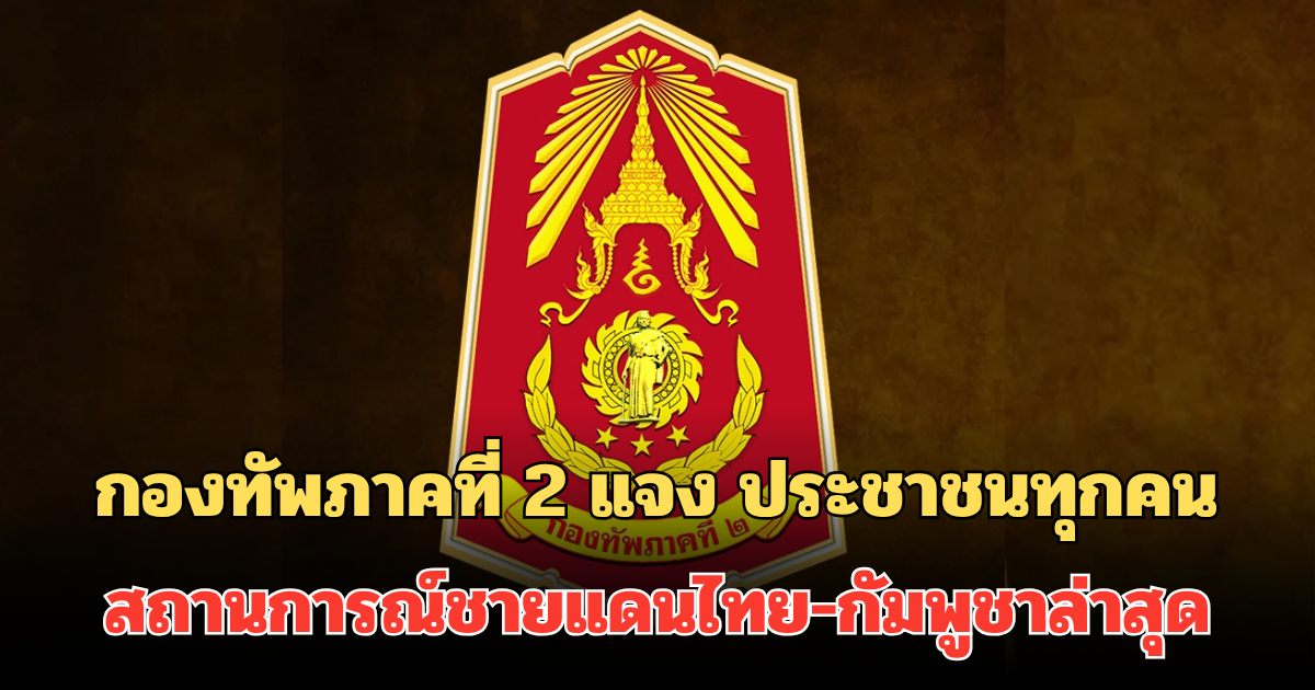 กองทัพภาคที่ 2 แจง ประชาชนทุกคน สถานการณ์ชายแดนไทย-กัมพูชาล่าสุด