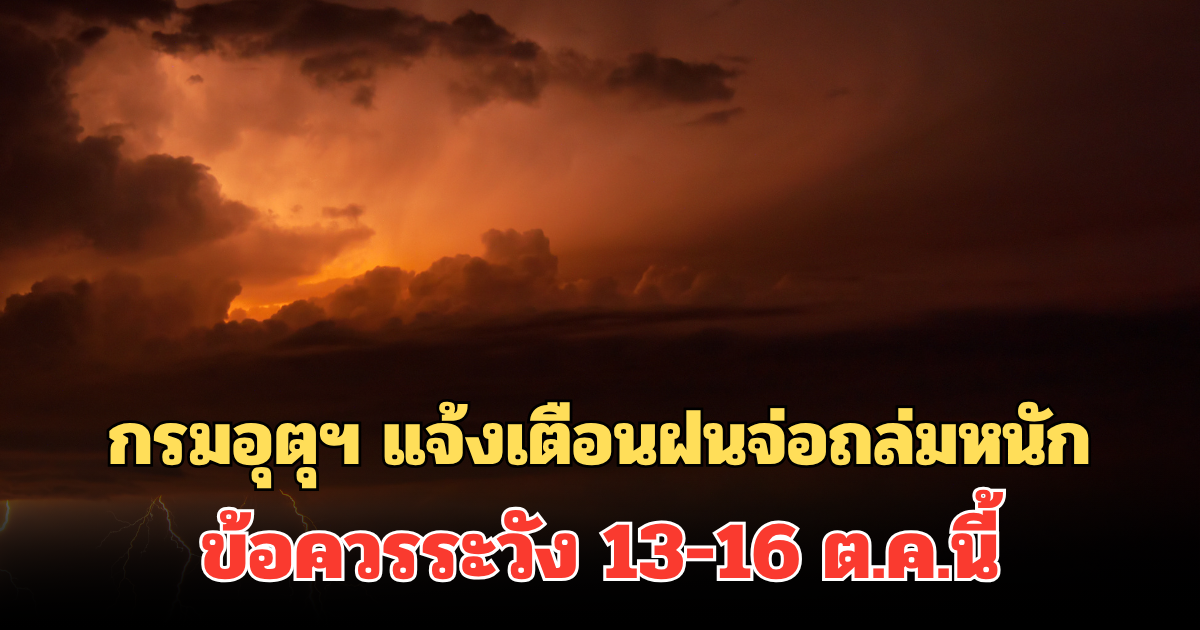 กรมอุตุฯ แจ้งเตือนฝนจ่อถล่มหนัก ข้อควรระวัง 13-16 ต.ค.นี้