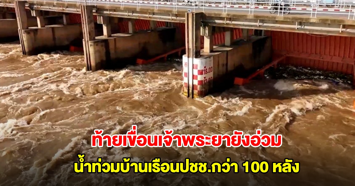 ท้ายเขื่อนเจ้าพระยายังอ่วม น้ำท่วมบ้านเรือนประชาชนกว่า 100 หลัง