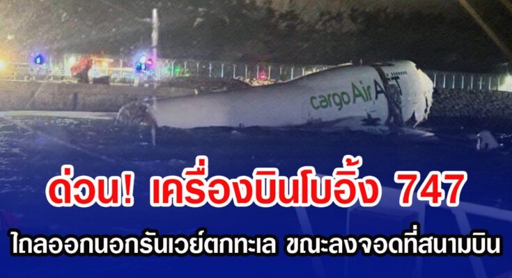ด่วน!! เครื่องบินโบอิ้ง 747 ไถลออกนอกรันเวย์ตกทะเล ขณะลงจอดที่สนามบิน (ข่าวต่างประเทศ)