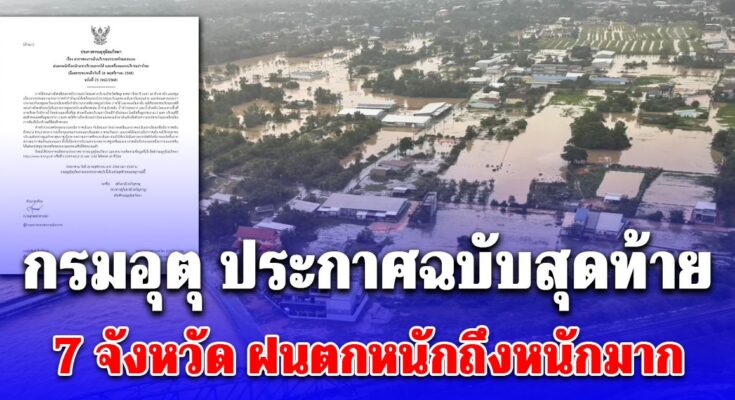 กรมอุตุ ประกาศฉบับสุดท้าย 7 จังหวัด ฝนตกหนักถึงหนักมาก น้ำท่วมฉับพลัน น้ำป่าไหลหลาก