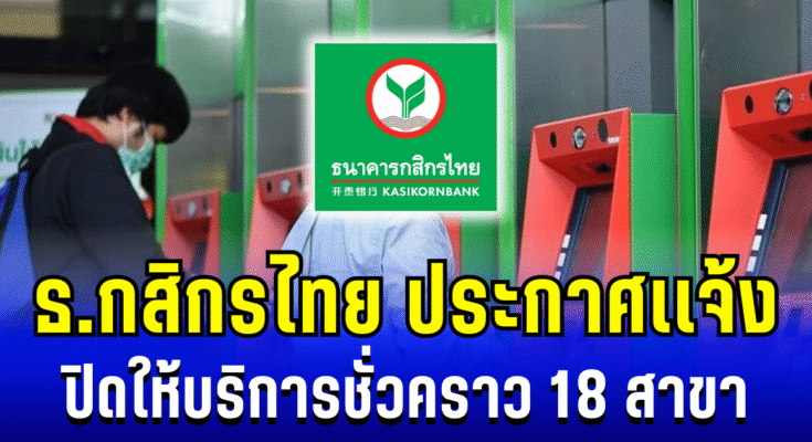 ธ.กสิกรไทย ประกาศเเจ้ง ปิดให้บริการชั่วคราว 18 สาขา