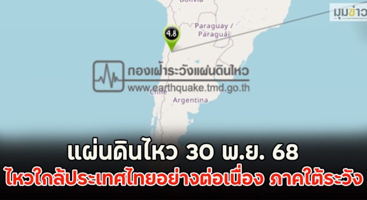 แผ่นดินไหว 30 พ.ย. 68 ไหวใกล้ประเทศไทยอย่างต่อเนื่อง ภาคใต้ระวัง