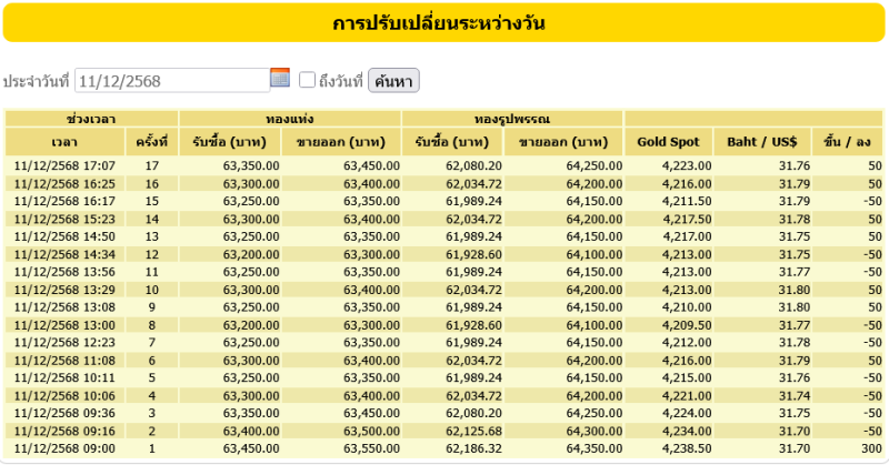ราคาทอง ปิดตลาดวันนี้ 11 ธ.ค.68