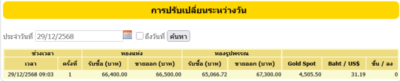 ราคาทองวันนี้ 29 ธ.ค. 68