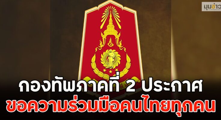 กองทัพภาคที่ 2 ประกาศ ขอความร่วมมือคนไทยทุกคน
